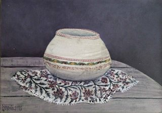 یا قلمکار زیبا بود و وسط آن گلدانی نشسته و همیشه پُُر بود از گل های باغچه.